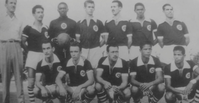 Timaço do Clube dos Funcionários. A foto foi tirada no Estádio Raulino de Oliveira, em 05/06/1955 e pertence ao acervo de Afrânio Conceição Leal.