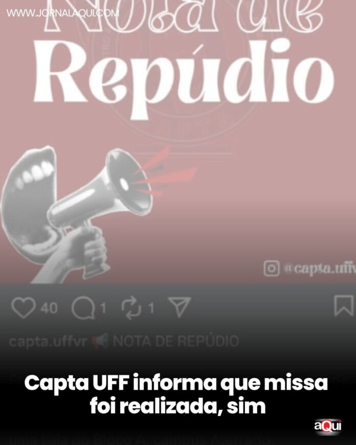 O Centro Acadêmico de Psicologia Tatiana Ramminger (Capta-UFF) reagiu à postagem do aQui sobre a não realização de uma missa no campus da universidade, no Aterrado. Em mensagem ao jornal, informou que a missa ocorreu normalmente, “como sempre acontece, assim como as reuniões de grupos protestantes e católicos”.