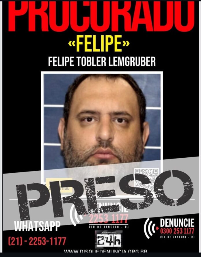 Em janeiro de 2022, o Portal dos Procurados – que auxilia a Polícia Civil do Rio na captura de foragidos da Justiça – publicou o cartaz de Felipe Lemgruber como foragido da Justiça de Barra do Piraí. Na semana passada, porém, o Ministério Público republicou o mesmo cartaz, desta vez com a inscrição ‘preso’, sobre a foto de Felipe. Visivelmente mais gordo, o ex-servidor foi capturado em um endereço nobre da Barra da Tijuca. Ele foi preso por agentes da Coordenadoria de Segurança e Inteligência (CSI/MPRJ) e da Coordenadoria de Inteligência da Investigação (CI2/MPRJ), em cumprimento ao mandado de prisão expedido pela juíza da 2ª Vara de Barra do Piraí, Katylene Collyer Pires de Figueiredo.