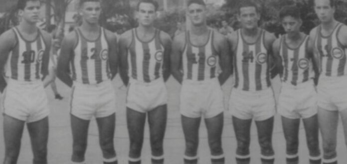 A foto é da seleção de basquete da LDVR – Liga de Desportos de Volta Redonda – tirada em 195, na quadra do Clube Umuarama. Pertence ao acervo do saudoso Libiano Abiatti.