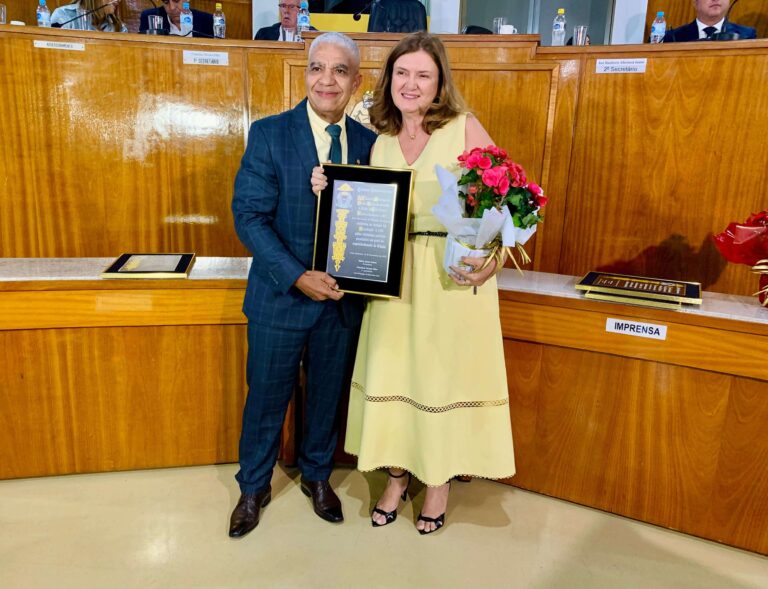 A vice-presidente da Unimed Volta Redonda, Elaine Nogueira Furtado, e a diretora Isis Rosemeri Lassarote receberam os títulos de cidadania volta-redondense durante sessão solene da Câmara de Vereadores. As duas indicações foram feitas pelo presidente da Casa, Edson Quinto. A doutora Elaine, que não pôde comparecer, foi representada por seus pais, Hélio Almir Nogueira e Aparecida das Graças Nogueira. E coube à doutora Isis Lassarote discursar em nome dos homenageados. “Ser reconhecida como cidadã volta-redondense é mais do que um título: é um símbolo de que minha trajetória se entrelaça com o desenvolvimento deste município”, pontuou.