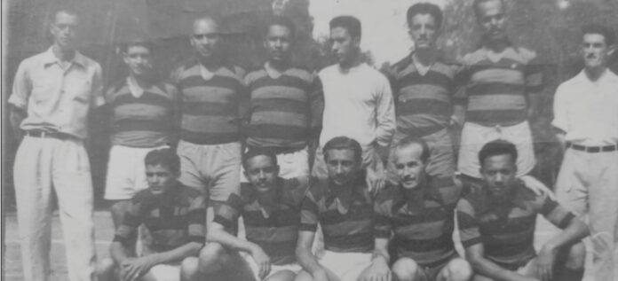 A foto é do time do DPE – Departamento de Pessoal da CSN, vice-campeão do Torneio Interdepartamental da CSN, disputado em 1954. Pertence ao acervo do saudoso Walmo Taranto e foi tirada no Estádio do Tabajaras (Clube dos Funcionários).