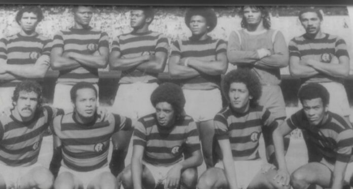 Esse é o time do saudoso Guanair de Souza Host, o C.R Flamengo, da Vila Americana, que empatou com A.A Barbará, no Maracanã. A foto foi tirada em 1975 e pertence ao acervo de Edinho Silva.