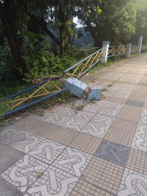 Já um morador da Colina, que gosta de caminhar por diversos bairros de Volta Redonda, revela que é flagrante o estado de abandono da pista de caminhada da Avenida Beira-Rio, no Retiro. A grade de proteção que separa a pista da margem do Rio Paraíba, está caída assim, jogada às traças, há mais de três meses.