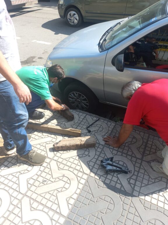 No Aterrado também existe outro buraco (ver foto) que tem feito vítimas quase que diariamente. Fica na rua do estádio Raulino de Oliveira, revela um leitor do aQui. A roda do carro dele, ao estacionar para ir a uma consulta na Clínica da Cidadania, caiu no buraco e foi um sufoco (ver foto) para conseguir retirar o veículo que teve a roda danificada.