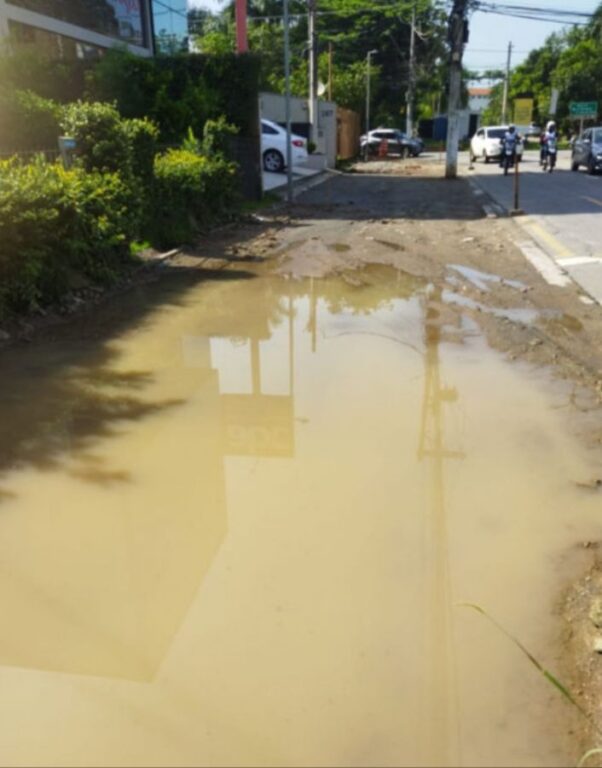 Rua 33 foram concretadas em novembro, e em menos de quatro meses estão sendo quebradas novamente”, disparou. “Um absurdo”, sentencia. Entre as fotos enviadas, escolhemos esta, que passou a ser comum nos dias de chuva. Ou seja, todos os dias.