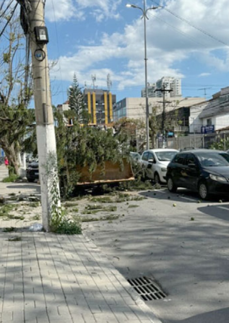 A foto, de uma leitora, já foi postada nas redes sociais, mas, a pedido dela, que não quer ser identificada, também está sendo aproveitada na coluna ‘Broncas e Palmas’, afinal, foi inusitada. Sorte é que ninguém se machucou. Mostra o momento em que um dos pinheiros existentes no canteiro central da Rua 33 caiu em cima de uma pá-carregadeira a serviço da prefeitura de Volta Redonda, interrompendo o trânsito na via sentido Praça