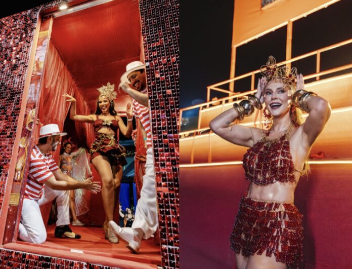 Inspirado no conceito de abrir as portas da festa, o desfile levou para a avenida uma narrativa visual épica, pensada para exaltar a cultura do samba e fortalecer a relação entre Brahma e o Carnaval carioca. Durante cerca de 15 minutos, mais de 300 participantes tomaram conta da Sapucaí, conduzindo o público por uma jornada vibrante dividida em cinco alas temáticas. A abertura foi marcada pelo Caminhão Portas Abertas, uma alegoria que simbolizou o início do Carnaval, acompanhado por 20 bailarinos, que trouxeram performances coreografadas especialmente para a ação. Em seguida, 12 latas gigantes, divididas em duas alas, de três metros e meio de altura, representaram as escolas do grupo especial, levando para a avenida a energia e a paixão de cada agremiação. No coração do desfile, a Arquibancada do Samba, outro caminhão alegórico, reuniu 40 ritmistas que incendiaram o trajeto, ao som da regravação especial de “É Hoje”, enquanto Paolla Oliveira, embaixadora da marca, brilhou com samba no pé.