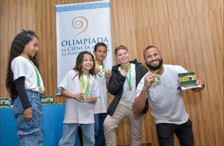 Quatro alunos da Escola Municipal Pernambuco foram medalhistas de ouro na III Olimpíada de Ciência & Arte, da Fundação Cecierj. A Premiação aconteceu no Museu Ciência e Vida, em Duque de Caxias, sendo que a competição contou com 428 participantes, entre estudantes e professores orientadores, de 21 municípios fluminenses. Os alunos Caíque de Moura Toledo e Sophia Leite dos Santos, do 5º ano do Ensino Fundamental, e Arthur Fernandes Batista dos Santos e Alice Eller Barboza, do 4º ano, acompanhados e orientados pelo professor Cleverson Berion Silva e pela supervisora educacional Giselle Campos Moura, garantiram o primeiro lugar com a proposta “A luta entre o bem e o mal na preservação da fauna e da flora”. Eles criaram um teatro, e o cenário foi feito digitalmente para evitar o consumo de materiais, diminuindo assim o impacto na natureza. Já a Escola Municipal Pernambuco se destacou na 1ª Olimpíada Brasileira de Língua Inglesa com os alunos Caíque Moura Toledo e Kaio Vasconcelos Pereira, do 5º ano, que conquistaram a medalha de bronze na competição que reuniu escolas públicas e privadas de todo o país. A dupla foi orientada pela professora Sueli Rodrigues Eller do Nascimento.