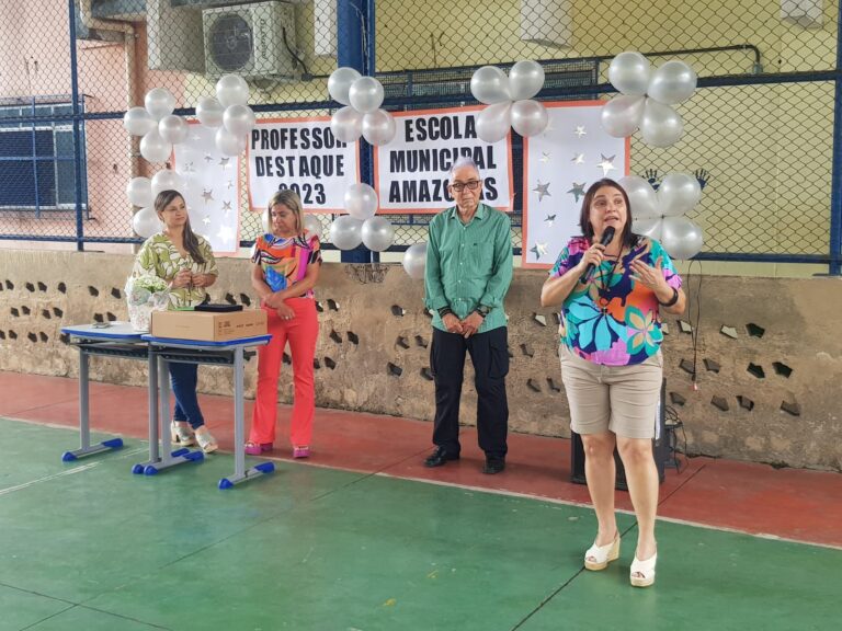 A secretaria de Educação de Volta Redonda deu início às comemorações pelo Dia do Professor, a ser celebrado em 15 de outubro. Na segunda, 9, o titular da pasta, Sérgio Sodré, entregou uma placa de homenagem à professora Mariza Leal, eleita ‘Professor Destaque do Ano 2023’. A homenagem, de forma a simbolizar a todos os profissionais escolhidos em votação, ocorreu na Escola Amazonas, no Retiro, onde a professora Mariza atua, e contou com a presença da direção da unidade, de outros professores e alunos.