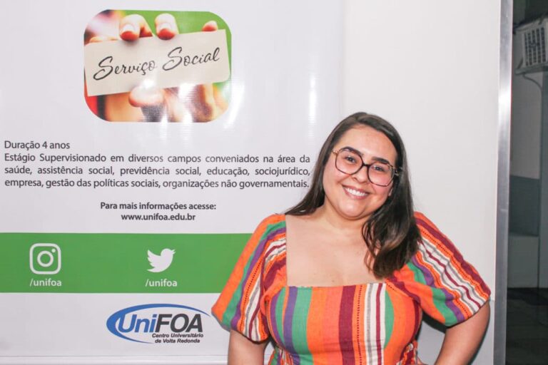 Aluna do terceiro ano do curso de Serviço Social do UniFOA, Carine Rezende (na foto) foi aprovada em segundo lugar no concurso do Tribunal de Justiça do Rio de Janeiro para o cargo de assistente social. Somada à dedicação aos estudos, Carine afirma que a aprovação é uma demonstração da qualidade do ensino do UniFOA, Tanto que a primeira pessoa com quem compartilhou a notícia foi a professora de Ética Profissional, Daniele do Val, a quem agradeceu por ter abordado o mesmo tema da prova discursiva do concurso na disciplina, anteriormente. “Foi sobre preconceito racial e o papel do assistente social. Eu tirei nota 39,47, do total de 40. Então, fiquei muito grata, porque caiu tudo que ela tinha trabalhado com a turma naquela matéria, especialmente o projeto ético-político da profissão”, revela.