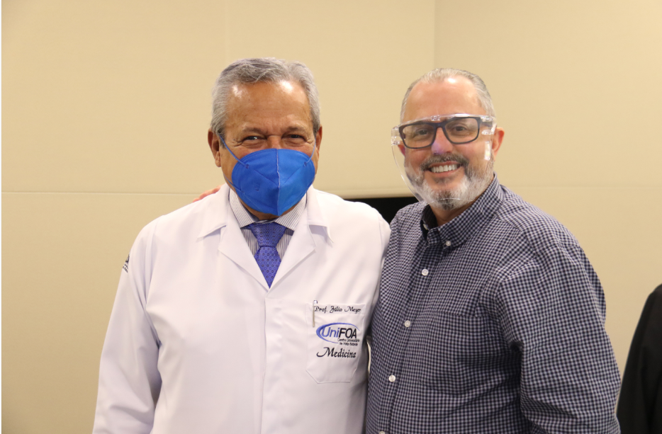 O Presidente da FOA, Eduardo Prado, fez questão de ressaltar o papel relevante que Júlio sempre desempenhou como professor da instituição e também para os estudantes. “Júlio Meyer é referência na área de neurocirurgia e atendimento. É um grande orgulho ter o professor no nosso corpo docente e, também, como membro do Conselho Curador da FOA”, avaliou Prado, na foto ao lado do amigo, professor e médico.