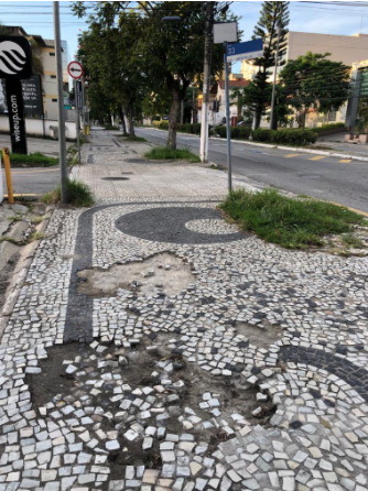 A Rua 33 tem o m² mais caro de Volta Redonda. Qualquer casinha, sem reforma, vale milhões (pelo menos é o que os seus donos pensam). Mas, como mostra a foto enviada por um leitor, suas calçadas, nos dois lados da via, estão abandonadas, com as famosas pedras portuguesas ao deus-dará. Soltas, as pedrinhas, tão bonitas e caras, já provocaram a queda de dezenas de pessoas, principalmente idosos. Em tempos de Covid, ninguém deve se machucar ao passar pela 33 e correr o risco de parar em um hospital, onde poderá ser contaminado pelo novo coronavírus.