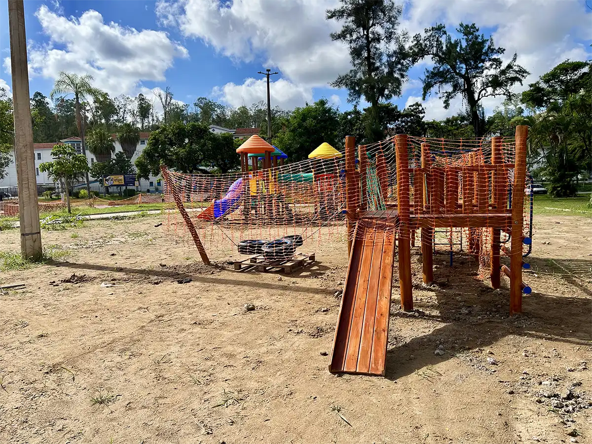 ETPC – A foto mostra parte dos novos brinquedos já instalados na Praça da ETPC, cuja reforma está quase concluída. Foram colocados logo na entrada da praça, que já foi a mais bonita da cidade do aço, quase em frente à Escola Técnica Pandiá Calógeras. Outros também foram colocados ao lado da nova pista de skate, igualmente reformada e em uso. Detalhe: nenhum brinquedo será coberto. É uma pena, poderiam ter sido instalados no mesmo espaço anterior, sob as árvores. O verão tá logo aí e vai castigar a criançada.