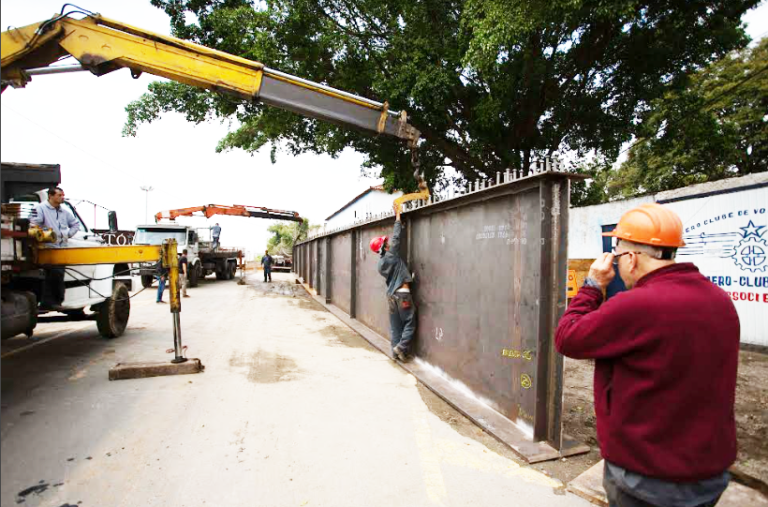 Viga – As primeiras partes das estruturas metálicas da nova ponte que está sendo construída sobre o Rio Paraíba, ligando Aero Clube e Aterrado, já começaram a chegar. Elas serão colocadas em aproximadamente um mês, logo que os primeiros pilares da ponte começarem a ficar prontos. A previsão é de que a primeira viga (foto) seja colocada em novembro.