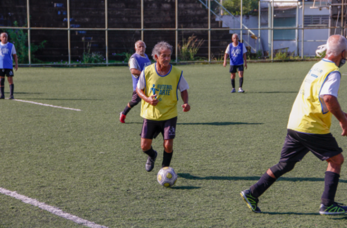 Futebol Arte – Foi com bolo de aniversário, refrigerantes e, claro, com uma boa pelada, que os “atletas” que fazem parte do Futebol Arte, da Associação dos Aposentados e Pensionistas de Volta Redonda, comemoraram os 17 anos do projeto, que acontece no miniestádio da Ilha São João, em Volta Redonda, e no Central Sport Clube, de Barra do Piraí. Segundo a gerente da Diretoria de Cultura, Raquel Almeida Ribeiro de Oliveira, o Futebol Arte, que na cidade do aço, é praticado às quartas e sextas, das 7 às 10h30min, além de proporcionar lazer, ajuda na preservação da saúde. “Muitos falam que, depois que começaram a jogar futebol, deixaram de procurar os médicos”, explicou.