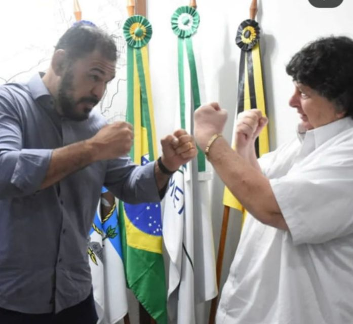 Luta – Na segunda, 6, o prefeito Neto recebeu o ex-lutador de MMA, Rogério Minotouro, que apresentou o projeto de luta ‘Esporte para Além das Fronteiras’. Neto ficou animado. “Nós gostamos muito, pois trata de prática esportiva aliada à educação, num modelo ainda pouco usado no país, mas muito comum, onde o esporte é um sucesso olímpico”, postou o prefeito, registrando o encontro com uma foto com Minotouro, bem no estilo ‘encarada’ de lutadores.