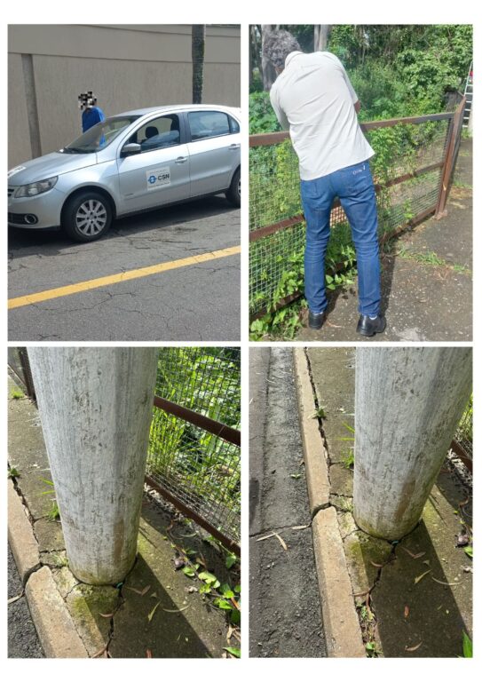 Laranjal (I) – Outro, que se identificou como Camilo Gomes, relata problemas no Laranjal, um dos bairros chiques de Volta Redonda. Segundo ele, existe um terreno baldio, que pertence à CSN, localizado à Rua 100, próximo ao no 397, onde o asfalto está se deteriorando. “Nessa mesma altura, um poste da Light está fixado em um solo totalmente rachado. Há sérias chances de queda com risco de falha de energia no bairro”, denuncia. “Qualquer problema no barranco afetará o bairro debaixo, 60”, avisa.