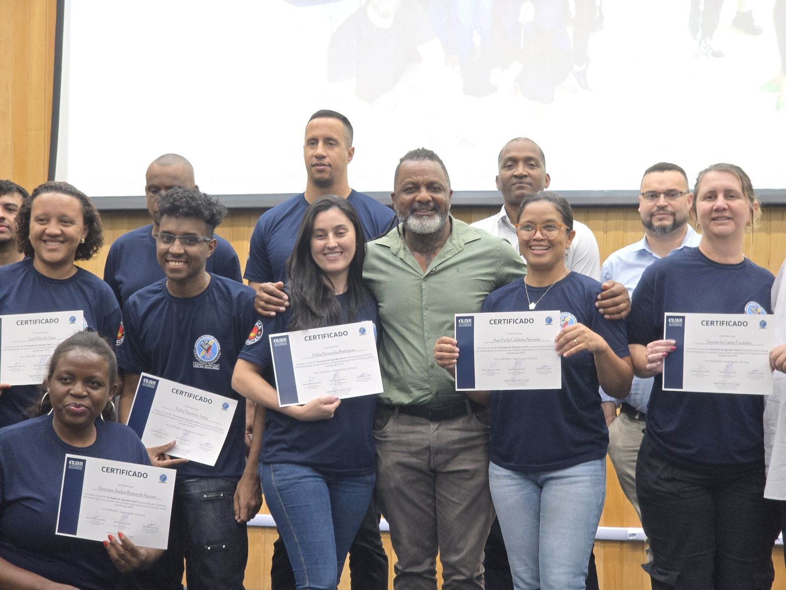 Formatura – Na quinta, 18, a direção do Sindicato dos Metalúrgicos participou em peso da formatura das primeiras turmas do curso Operador Geral, oferecido pelo órgão em parceria com a Volkswagen Caminhões e Ônibus, de Resende. O evento contou com a presença de autoridades e representantes do setor automotivo e político que foram recebidos por Odair Mariano, presidente do Sindicato, o prefeito de Resende, Tande Vieira, e o deputado estadual Munir Neto. “O curso de Operador Geral representa mais do que uma capacitação técnica. Ele simboliza o compromisso com o futuro da nossa indústria, com o desenvolvimento da nossa região e com a valorização da mão de obra local. Cada diploma entregue hoje é uma conquista coletiva, fruto da união entre sindicato, Volkswagen e Cluster e, claro, da dedicação de cada aluno”, pontuou Odair.