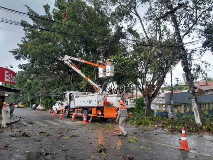 Na tarde de sábado, 19, uma equipe da Light esteve no Vila Rica/Tiradentes para efetuar a poda de uma árvore que, conforme o aQui mostrou, estava prestes a cair sobre uma rua do bairro, podendo atingir pessoas ou automóveis. Ótimo. A ironia é que, no momento em que eles estavam executando a poda, acabou a energia do bairro. Deu um apagão geral, detalhou um morador, autor das fotos. “Um transformador pegou fogo na avenida Valter Granato”, acrescentou.