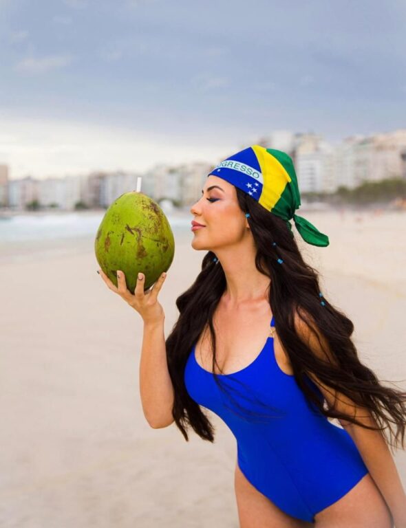A cantora Dillyene, como não podia ser diferente, está vibrando pela seleção Brasileira na Copa do Mundo. Tanto que até lançou, recentemente, o single ‘É do Brasil’. Ainda no clima do torneio, ela posou sensual de maiô azul e bandeira do nosso país. “Tenho acompa- nhado todos os jogos do Brasil e estou torcendo por nossa seleção. 5 estrelas e ruma à sexta. É do Brasil e sempre será”, profetizou a artista. Que assim seja!