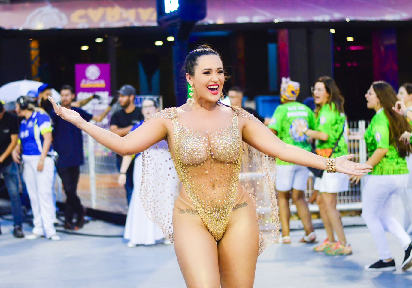 dourado, cravejado de brilhantes, a beldade, que é destaque de chão da agremiação, esbanjou alegria e simpatia. Com muito samba no pé, Suzana atraiu olhares dos componentes e do público presente. “É o meu segundo ano na Tucuruvi e só consigo sentir amor por essa escola maravilhosa. Estou muito ansiosa para o desfile, mas estou preparada e com a energia no pico para levar o título!”, disse, animada. Arrasou!