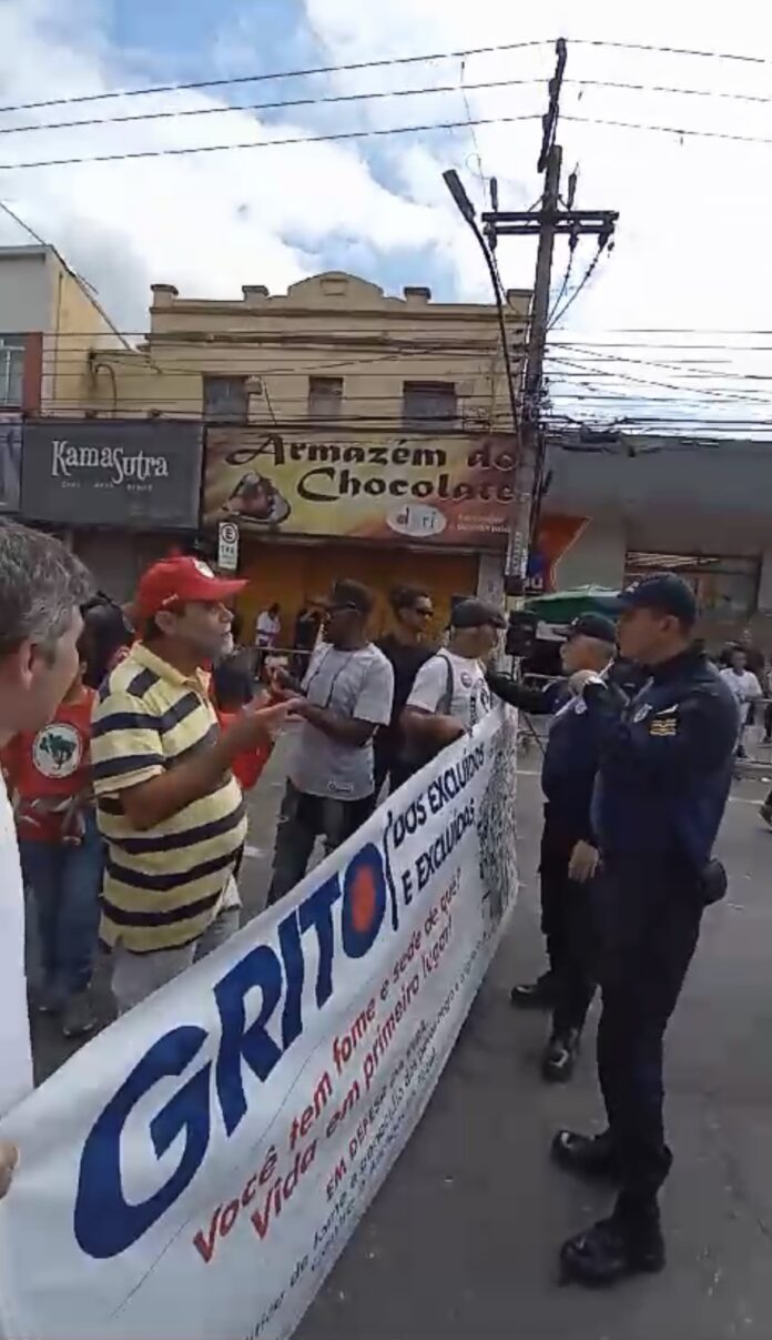 Um grupo de manifestantes formado por pessoas ligadas aos movimentos sociais de Volta Redonda, como o MST, foi impedido pela Guarda Municipal de se manifestar na Avenida 7 de Setembro, no Aterrado, onde aconteceu o desfile em comemoração à independência do Brasil.