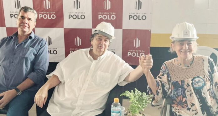 Na foto, Ivoneia aparece ao lado de Neto e do empresário Carlos Magno, dono da construtora onde a candidata fez uma palestra sobre valorização das pessoas com deficiência
