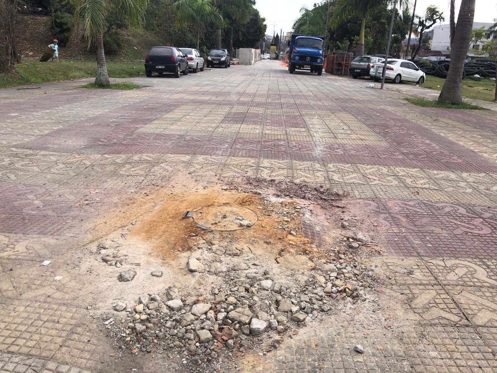 Breno Bahia está fulo da vida com a destruição da Praça da ETPC e encaminhou a foto para mostrar que a tradicional praça virou canteiro de obras da Rua 33 e estacionamento para carros dos operários que trabalham no trecho.