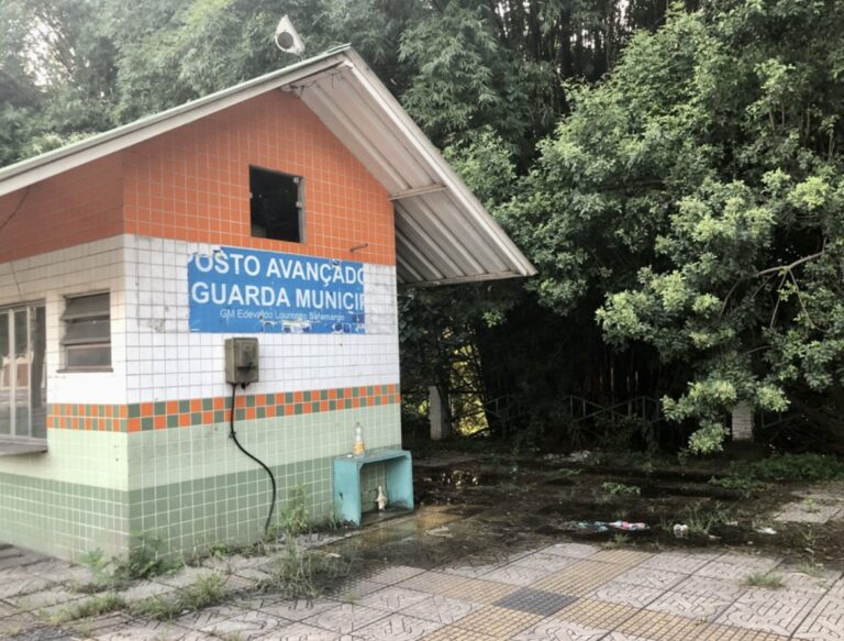 Ele tem razão. Até o posto avançado da GM existente na Beira-Rio está abandonado. “Os guardas sumiram daqui”, garante um senhor, já aposentado, que tem o costume de fazer caminhadas aos sábados e domingos. Ele, que se identificou como Edir, fez questão de mostrar à reportagem que o posto da GM e as construções que funcionariam como quiosques estão sem portas, janelas, torneiras e vasos sanitários. Não servem para mais nada. Nem luz têm. O banheiro de um deles parece um chiqueiro, tamanho fedor.
