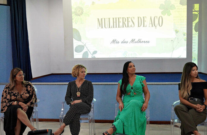 A parte exclusiva para servidoras do Palácio 17 de Julho contou com a participação da gerente-geral do setor de Gente e Gestão da CSN, Ana Paula Gonçalves; da delegada da Deam, Juliana Montes; da vereadora Carla Duarte; e da médica Juliana Monteiro, responsável técnica da Policlínica da Mulher de Volta Redonda.