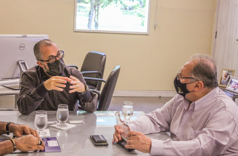 O presidente da FOA, Eduardo Guimarães Prado, e o presidente do CREA – RJ, Luiz Antônio Cosenza, se reuniram nas dependências da FOA para tratar da assinatura de um convênio entre as duas instituições e o uso das instalações do Centro Histórico, localizado no campus Olezio Galotti, para a entrega dos diplomas aos autores dos 11 trabalhos das engenharias do UniFOA premiados, em evento que ocorrerá no dia 17 de dezembro.