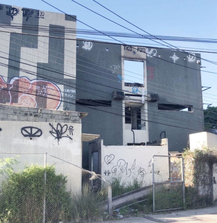 Também chama atenção a existência de outro imóvel abandonado nas proximidades do antigo São Camilo, mais precisamente na Rua 163, ao lado de uma pracinha no Laranjal. Era onde funcionava o Villa Centro Médico, com um centro de Diagnóstico e Clínico Integrado (ver foto). Atualmente, o antigo centro também é usado por moradores em situação de rua e por drogados. Os primeiros, inclusive, usam a antiga unidade para tomar banho na porta de entrada do que seria a clínica, usando uma torneira que servia para molhar plantas As portas, assim como no São Camilo, já foram arrancadas, e entra quem quer. O mosquito da dengue deve estar adorando.
