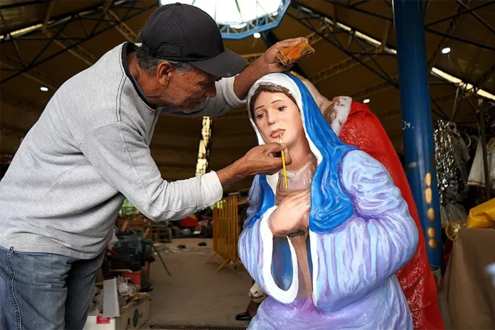 O artista plástico Paulo Bernardo, coordenador da equipe, destacou o caráter artesanal e afetivo da produção. “Somos cinco profissionais: costureira, aderecistas e artistas, e trabalhamos o ano todo nas grandes decorações da prefeitura, como a Toca do Coelho, o Arraiá da Cidadania, o Bloco da Vida e, claro, o Natal. Também atendemos várias secretarias com serviços de eventos. Cada escultura e cada detalhe carregam nossa esperança e o desejo de levar alegria às pessoas. O mais bonito é ver as famílias pararem para admirar e as crianças sorrirem. É um trabalho que enche o coração”, pontuou.