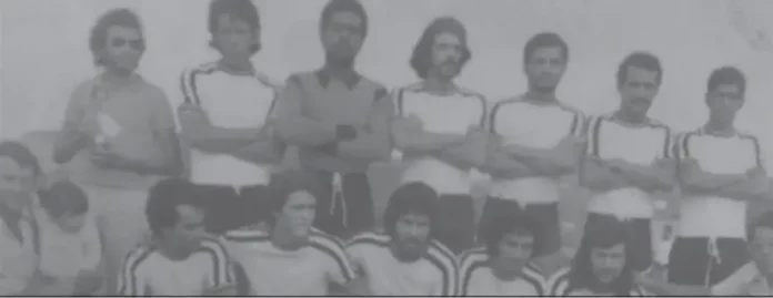 Em pé, da esquerda para a direita: (NI), Paulão, Dejair, Carlinhos Moreira, Paulo Valeta, Luisinho Moreira e Pedrinho da 60. Agachados: Tatu (treinador), Divino, Paulo Carvalho, João Caroço, Wilson pé na cova, Hélcio e Wilson