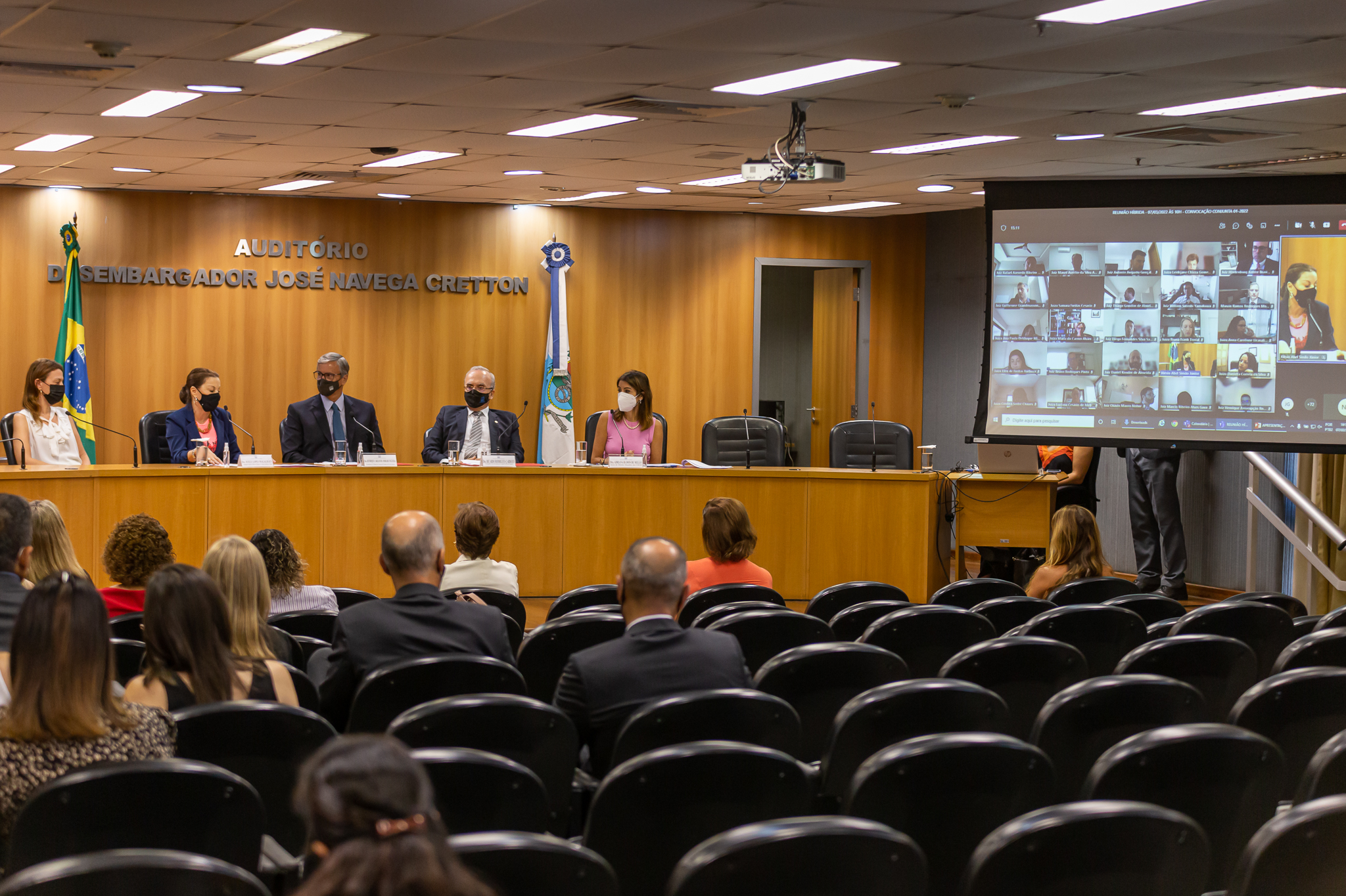 O encontro, realizado no auditório Desembargador José Navega Cretton, no Fórum Central, foi feito de forma híbrida, através da plataforma Teams, e contou com a presença do presidente do TJRJ, desembargador Henrique Carlos de Andrade Figueira; do corregedor-geral da Justiça, desembargador Ricardo Rodrigues Cardozo; da juíza Adriana Ramos de Mello, membro da COEM; e da presidente da Associação dos Magistrados do Estado do Estado do Rio de Janeiro (AMAERJ), juíza Eunice Bitencourt Haddad.