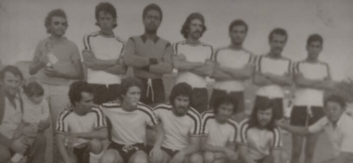 Em pé, da esquerda para a direita: (NI), Paulão, Dejair, Carlinhos Moreira, Paulo Valeta, Luisinho Moreira e Pedrinho da 60. Agachados: Tatu (treinador), Divino, Paulo Carvalho, João Caroço, Wilson pé na cova, Hélcio e Wilson